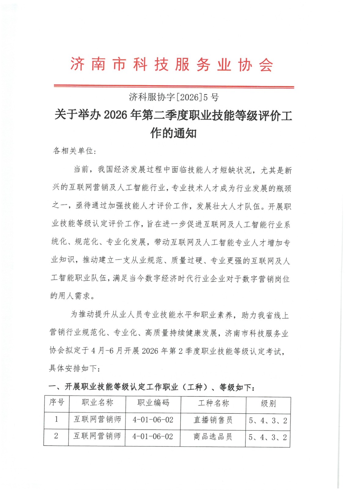 摘要:关于举办2026年第二季度职业技能等级评价工作的通知.pdf
