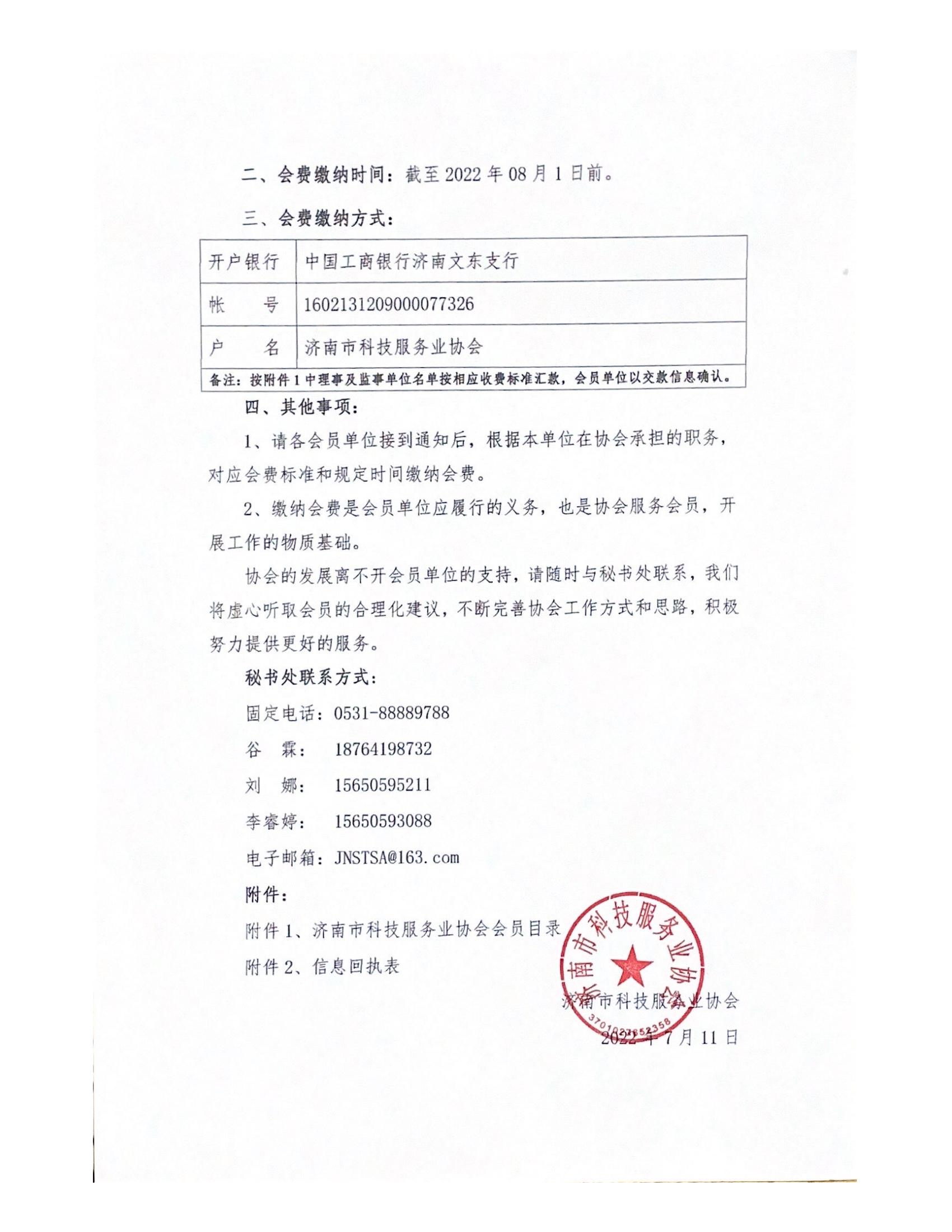 济南市科技服务业协会关于缴纳2022年度会费的通知