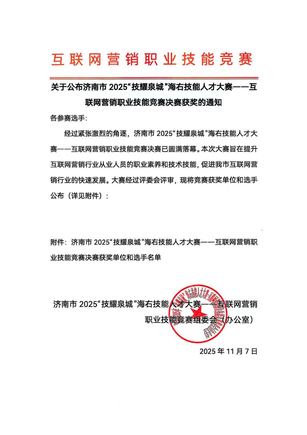 济南市2025“技耀泉城”海右技能人才大赛——互联网营销职业技能竞赛决赛获奖名单