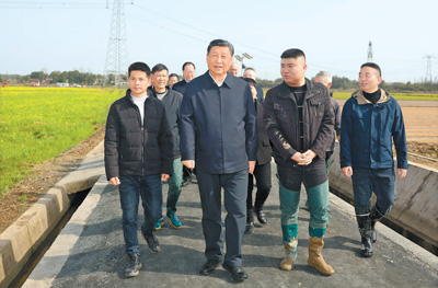 湖南是全国13个粮食主产省之一,水稻播种面积、总产量均居全国第一。当天下午,习近平来到常德市鼎城区谢家铺镇港中坪村,走进当地粮食生产万亩综合示范片区,察看秧苗培育和春耕备耕进展,听取高质量推进农业现代化情况介绍,并同种粮大户、农技人员、基层干部一笔一笔算投入产出账。习近平强调,我国有14亿多人口,粮食安全必须靠我们自己保证,中国人的饭碗应该主要装中国粮。要建设好高标准农田,推行适度规模经营,加强政策支持和示范引领,加大良种、良机、良法推广力度,在精耕细作上下功夫,进一步把粮食单产和品质提上去,让种粮也能够致富,进而吸引更多农户参与发展现代化大农业,真正把中国特色农业现代化之路走稳走扎实。