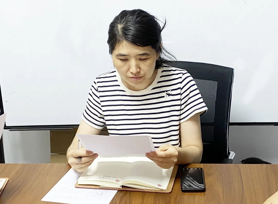 李艳芳同志带领大家学习中共中央办公厅印发的《关于在全党大兴调查研究的工作方案》。