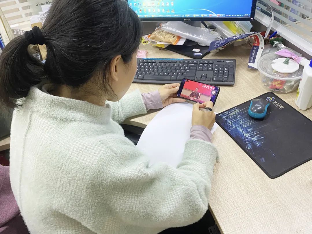 协会党支部书记王海虹同志带领部分党员及群众观看线上直播会议。