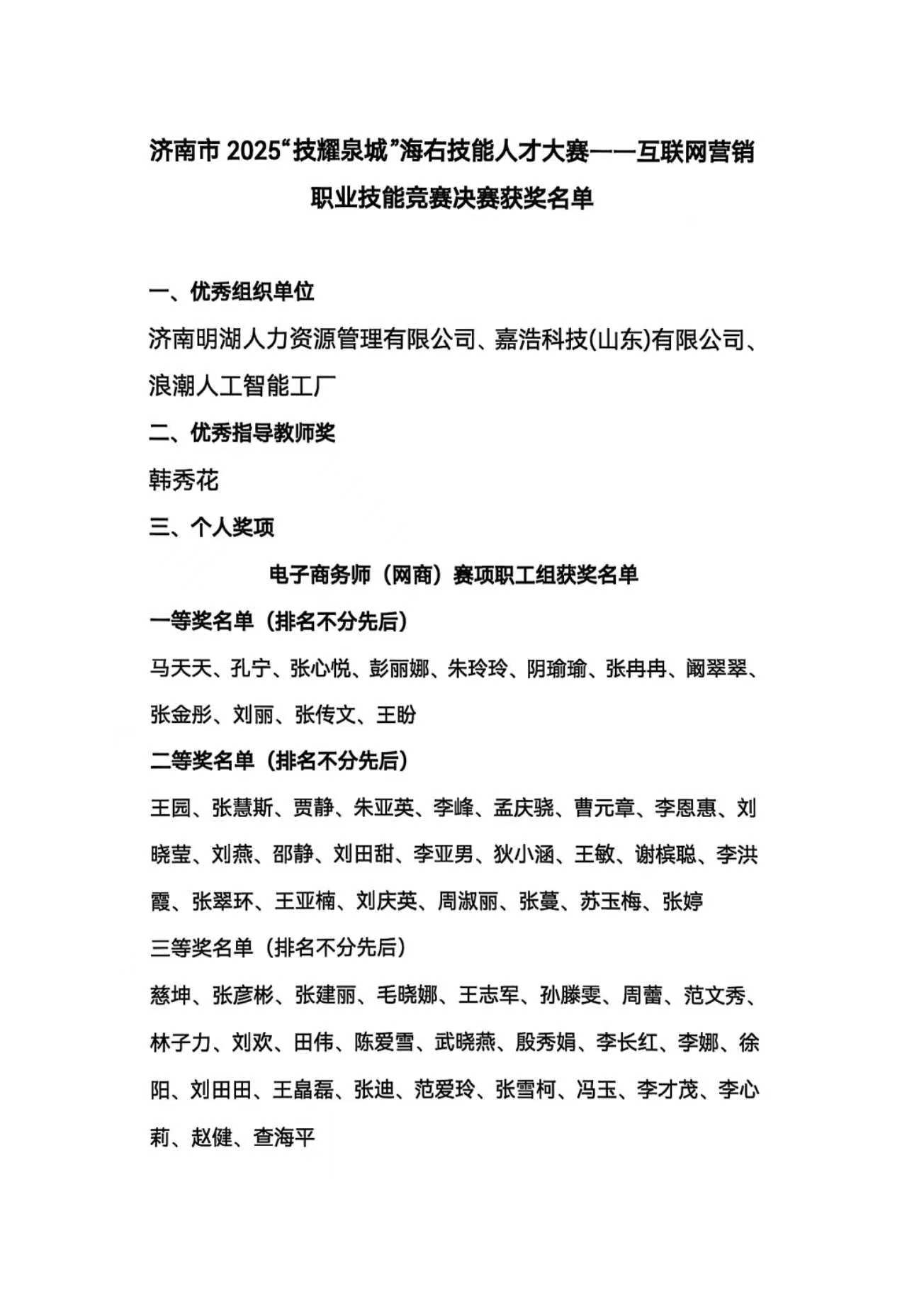 济南市2025“技耀泉城”海右技能人才大赛——互联网营销职业技能竞赛决赛获奖名单